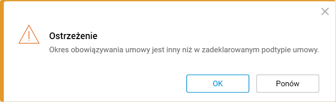 Rys. Komunikat ostrzegający o niespełnianiu wymagań dotyczących okresu obowiązywania umowy