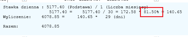 Ponadto zmieniono prezentację wysokości procentowej zasiłku dla wartości ułamkowych, np. 81.5%. Dotychczas wartość ta pokazywana była jako zaokrąglona do jedności. Obecnie pokazywana jest z 2 miejscami po przecinku.