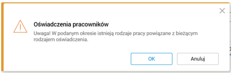 Jeśli pracownik ma już zarejestrowany rodzaj świadczonej pracy zdalnej wymagającej oświadczenia, pojawi się poniższy komunikat.