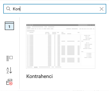 W aplikacji WPF zmieniono wygląd okna Otwarte zakładki oraz ulepszono je poprzez dodanie wyszukiwarki i dodatkowego przycisku.