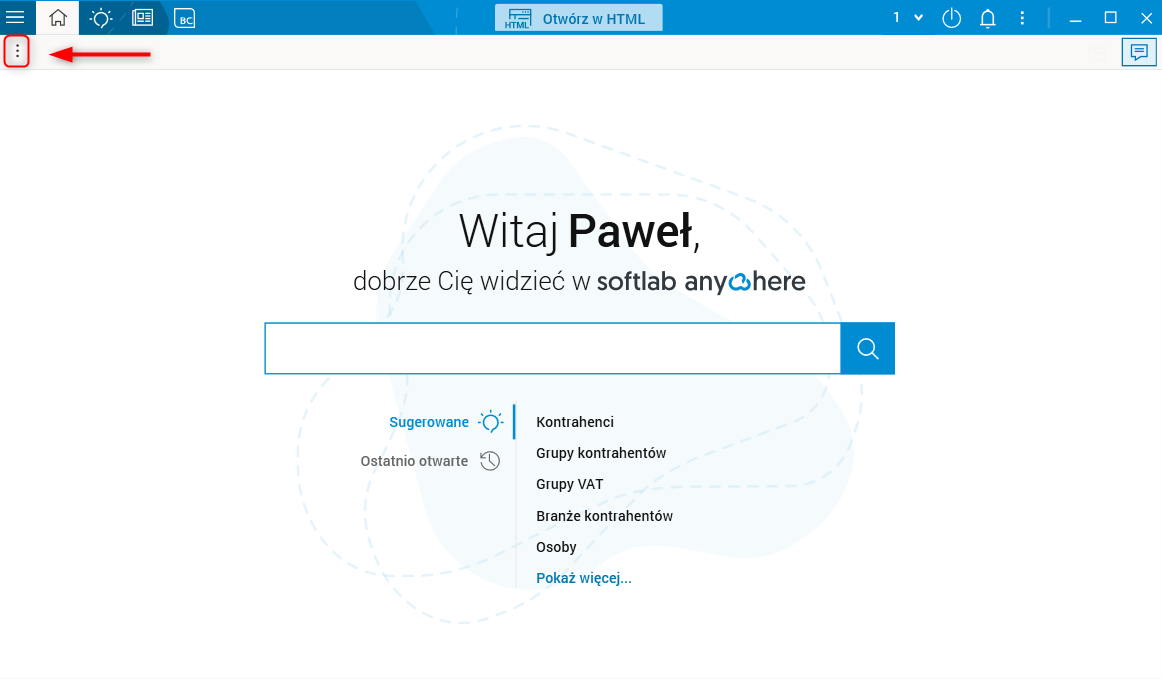 ). Znajduje się on w prawym górnym rogu aplikacji po otwarciu portalu AVP w aplikacji Softlab ERP.