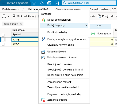 Rys. Opcja Nowa grupa widoczna w menu kontekstowym zakładki