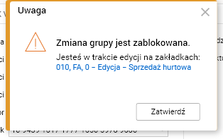 Rys. Przykładowe okno informujące, że zmiana grupy jest zablokowana