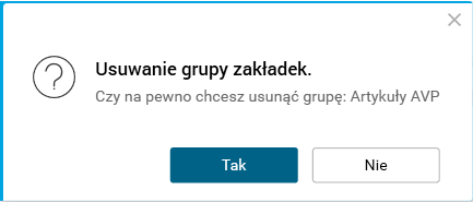 Po użyciu przycisku X aplikacja wyświetli komunikat z prośbą o potwierdzenie usunięcia grupy. Po zaakceptowaniu zostanie usunięta grupa, a w oknie aplikacji zostaną zamknięte zakładki do niej należące.