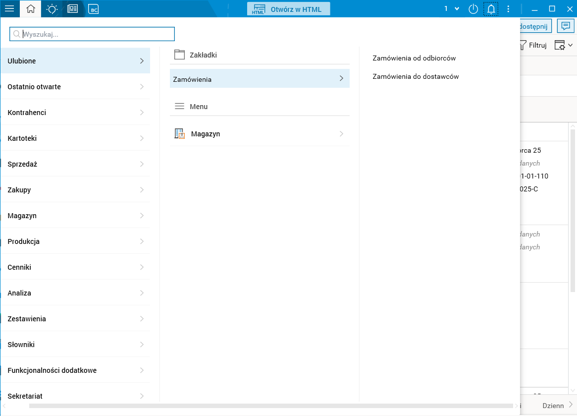 Rys. Główne menu aplikacji z widocznymi grupami zakładek