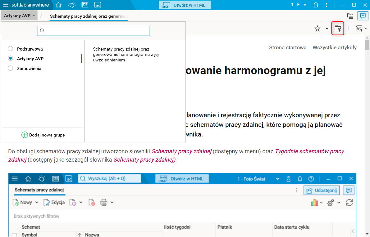 W przypadku artykułu z portalu AVP, dodajemy go do grupy zakładek poprzez otworzenie artykułu w nowej zakładce za pomocą przycisku Otwórz w nowej zakładce (