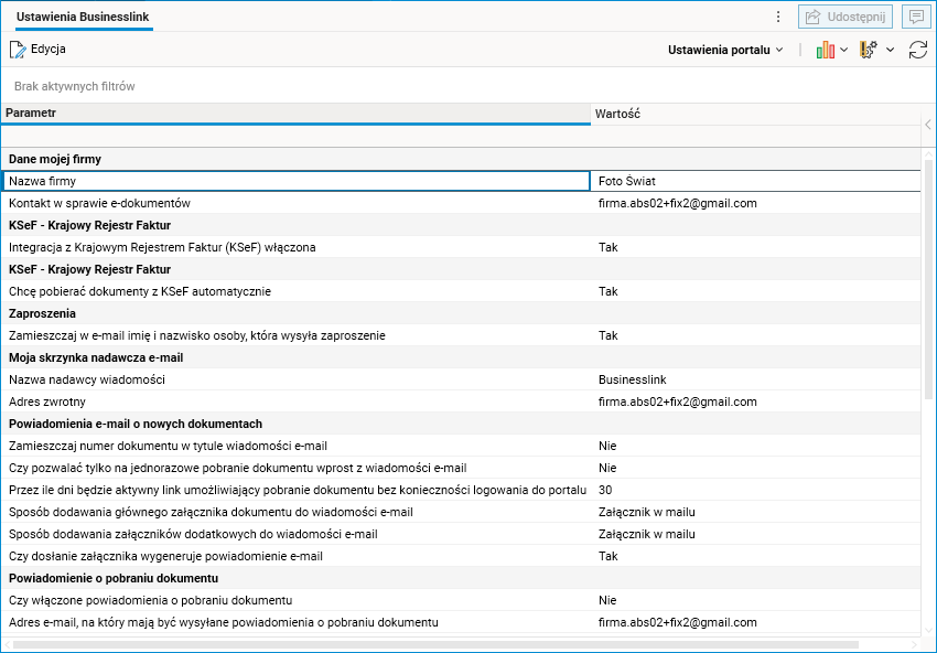 Dotychczas parametry te były dostępne wyłącznie w portalu Businesslink. Użytkownik pracujący w aplikacji Softlab ERP, chcąc zmienić np. sposób dodawania głównego załącznika do wiadomości e-mail, musiał to zrobić w portalu Businesslink, co wiązało się z wykonaniem dodatkowych czynności.