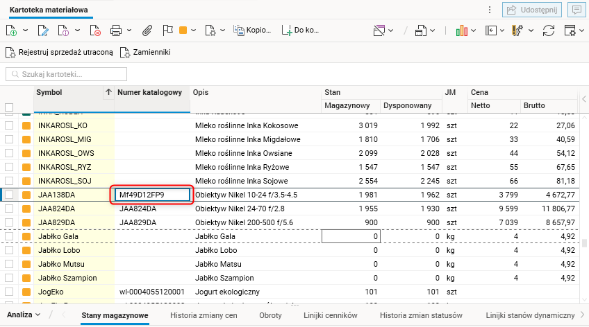 Rys. Ekran wprowadzenia numeru katalogowego kartoteki materiałowej