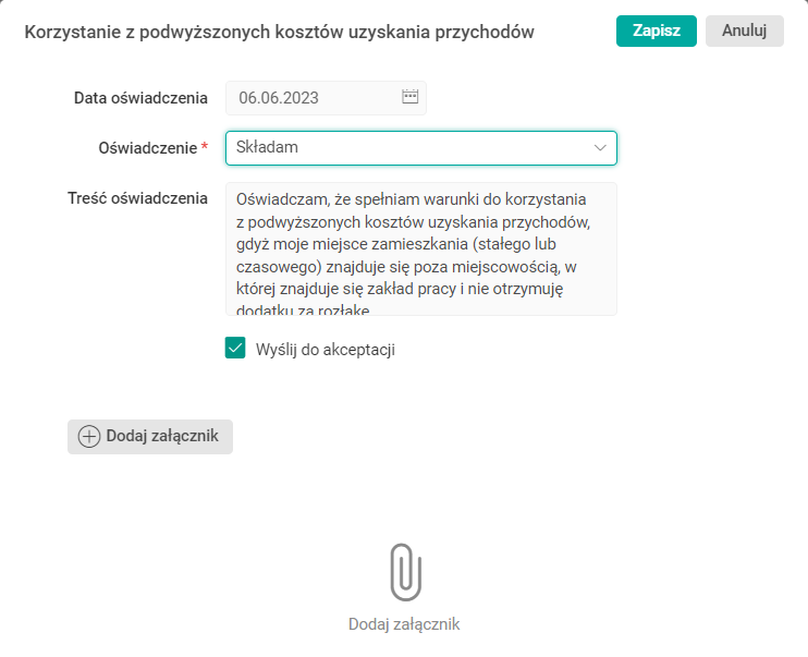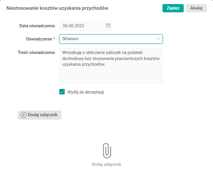 Zastępują one wniosek Stosowanie kosztów uzyskania przychodu, dostępny dotychczas w Portalu HR.