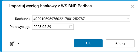 Rys. Okno parametrów procedury Importuj wyciąg bankowy z WS BNP Paribas