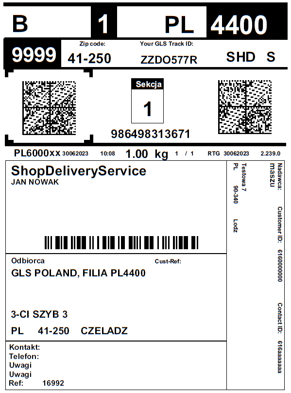 Rys. Przykładowa etykieta Shop Delivery-Service