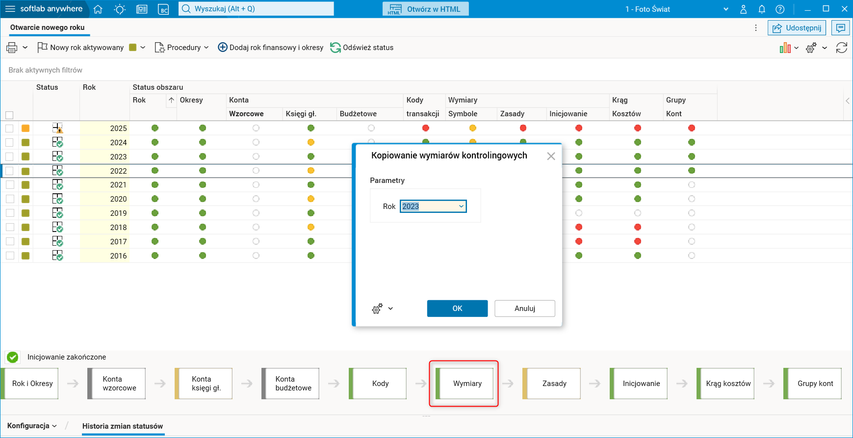 Rys. Słownik Otwarcie nowego roku, etap Kopiowanie wymiarów kontrolingowych