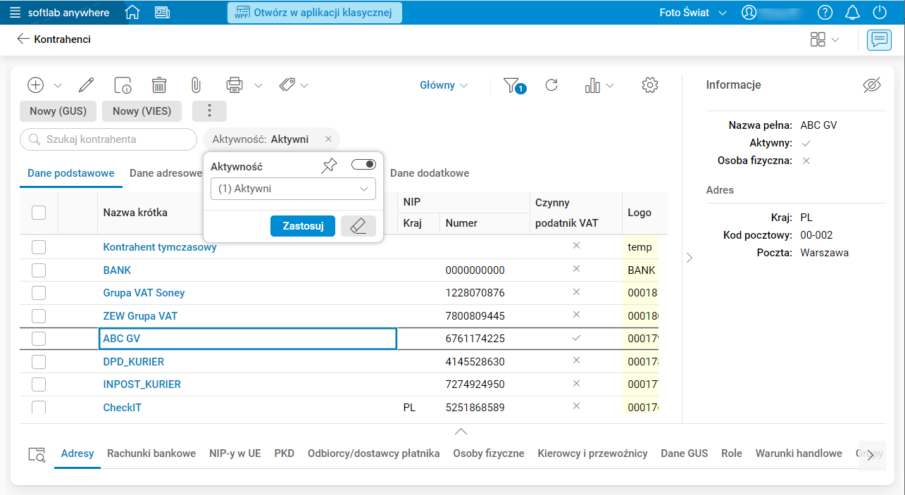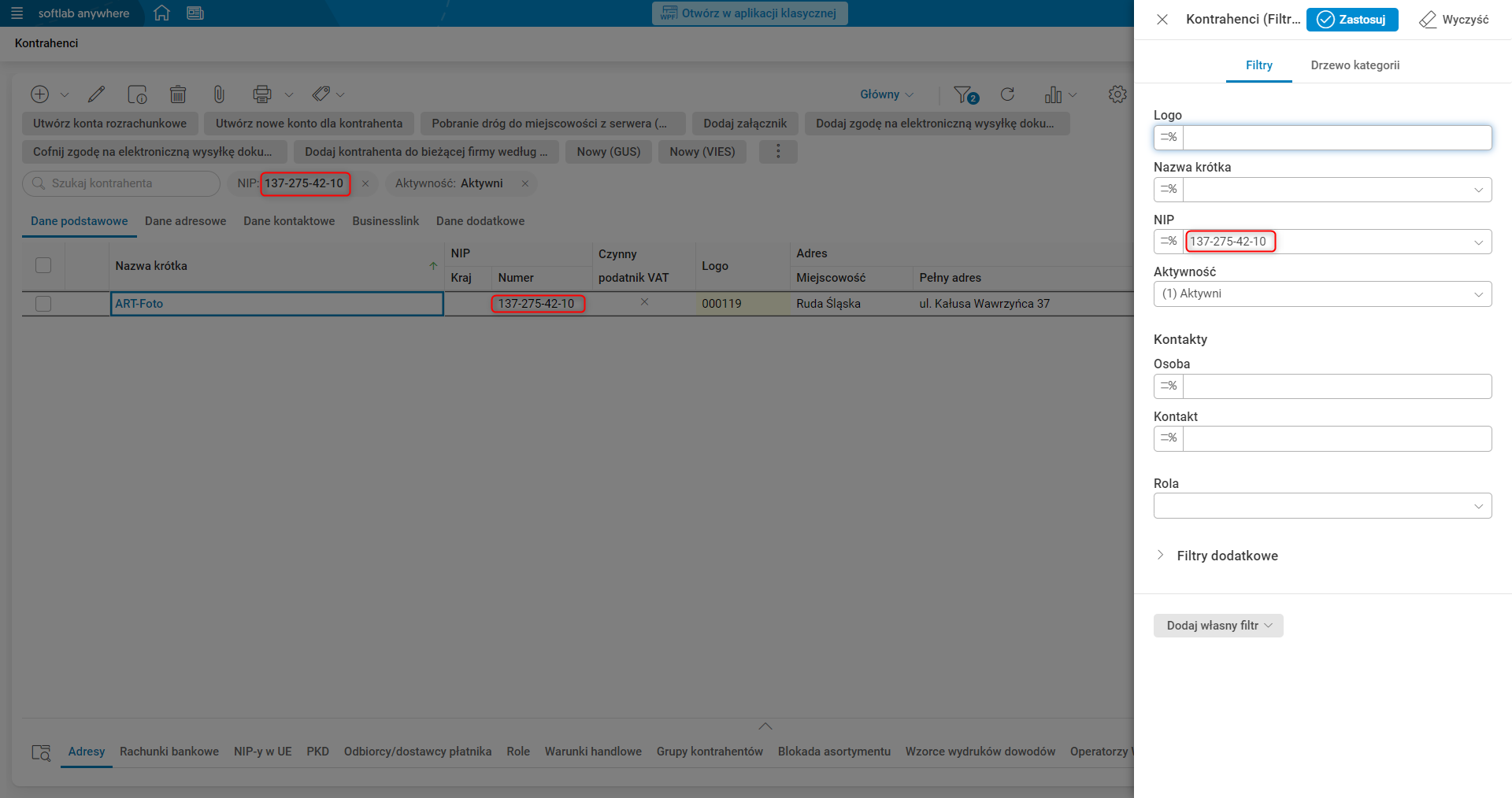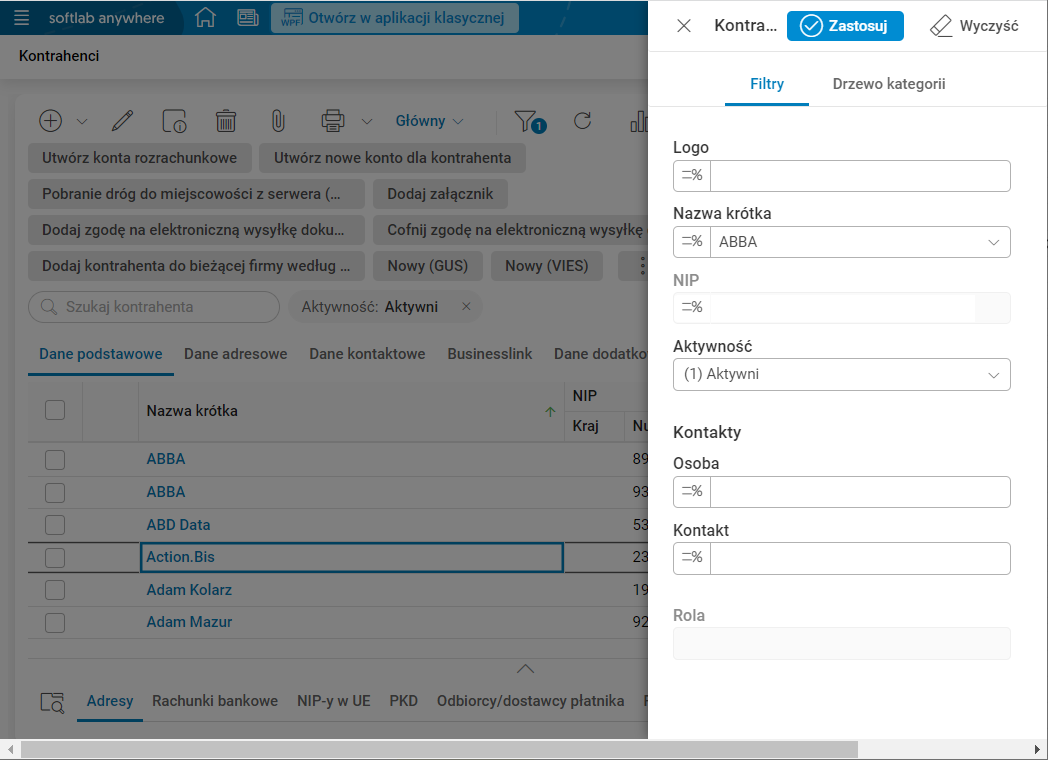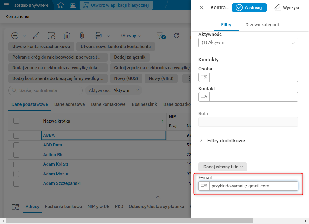 Po uzupełnieniu maski w oknie filtra i użyciu akcji Zastosuj, analogiczne pole w bocznym panelu filrtrów zostanie uzupełnione taką samą wartością.