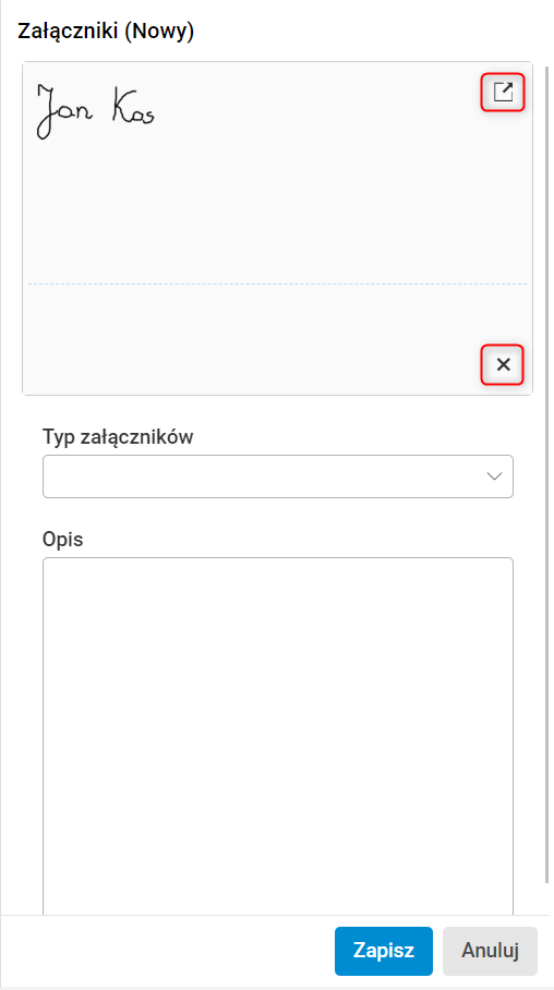 W aplikacji HTML umożliwiono dodanie własnoręcznego podpisu w aplikacji i zapisanie go jako załącznik w formacie .png.