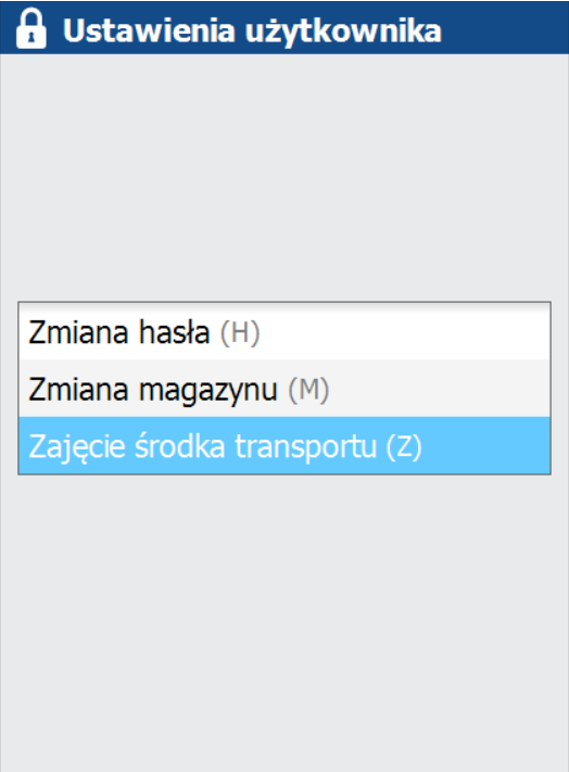 W podmenu ustawień użytkownika w aplikacji WMS Client dodano proces Zajęcie środka transportu.