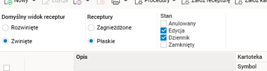 Udoskonalono słownik Drzewo technologii domyślnie ukrywając nieaktualne lub wycofane technologie związane z pośrednimi etapami produkcji. Słownik dostępny jako szczegół m.in. w słowniku Kartoteka materiałowa mógł pokazywać nieaktualne receptury dla pośrednich etapów produkcji.