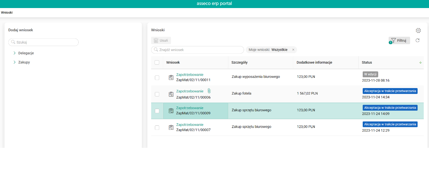 4. Umożliwienie stałego dostępu (wszystkim osobom odpowiedzialnym za proces) do statusu danego zapotrzebowania oraz jego szczegółów.