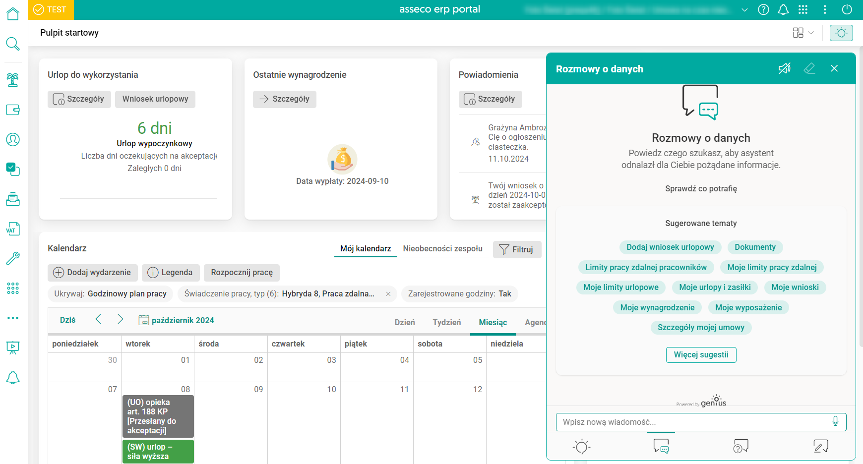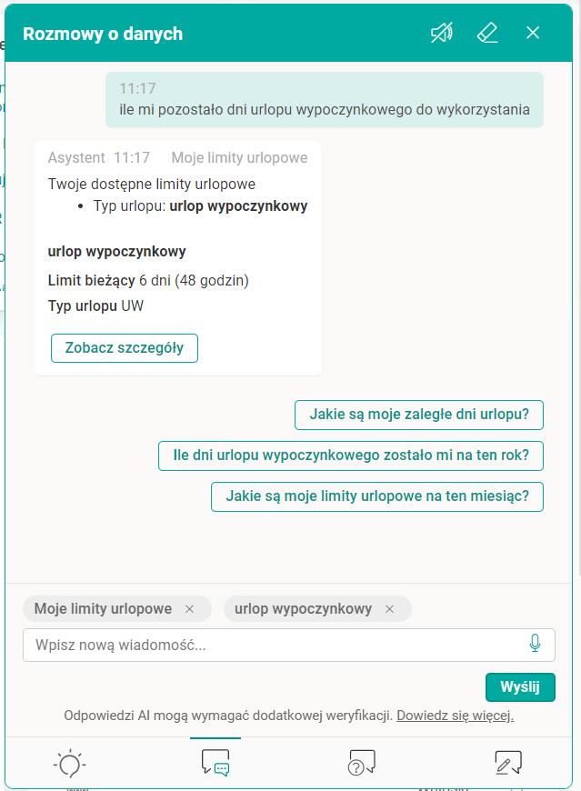 Rys. 6. Przykładowa odpowiedź Asystenta Danych w Portalu HR
