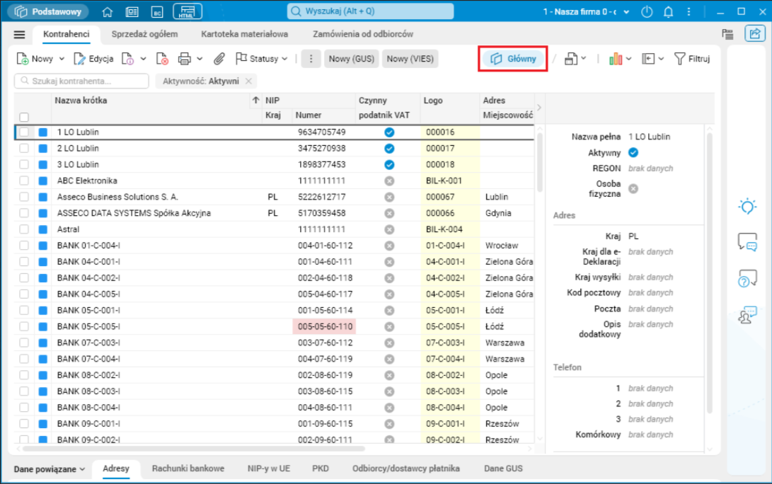 Rys. 1. Słownik Kontrahenci ze wskazanym przyciskiem Widok