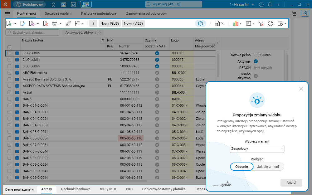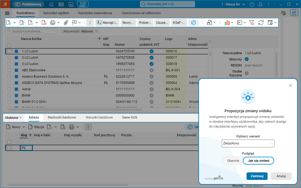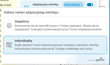 Opcje ustawień interfejsu zostały wzbogacone o funkcjonalność propozycji zespołowych ustawień inteligentnego interfejsu oraz możliwość włączenia adaptacyjnego interfejsu.