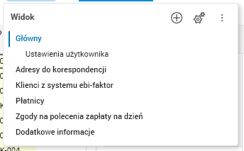 W przypadku gdy użytkownik wprowadzi zmiany w interfejsie, np. przestawi kolejność kolumn, ustawi maskę itp., wówczas w górnym prawym rogu przycisku Widok pojawi się żółta kropka informująca o tym, że nastąpiła zmiana.