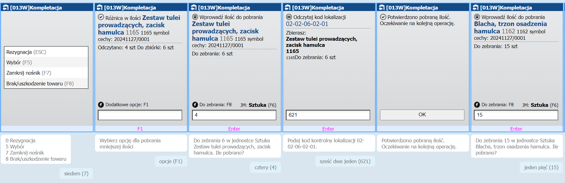 - W przypadku, gdy urządzenie nie jest przystosowane do obsługi głosowej lub obsługa głosowa jest wyłączona, to możemy zrealizować dowolne polecenie kompletacji.