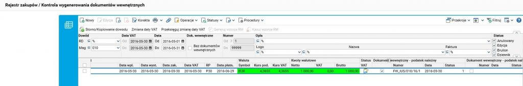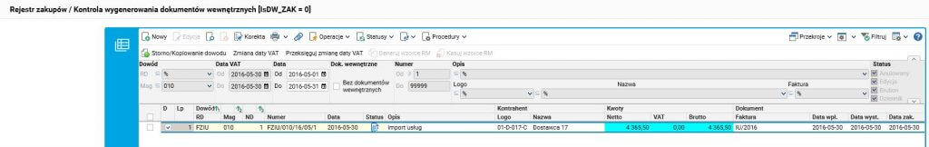 Przeglądając dokumenty można od razu wyeliminować braki i wygenerować odpowiednie dokumenty wewnętrzne (dostępna odpowiednia procedura).