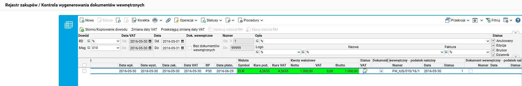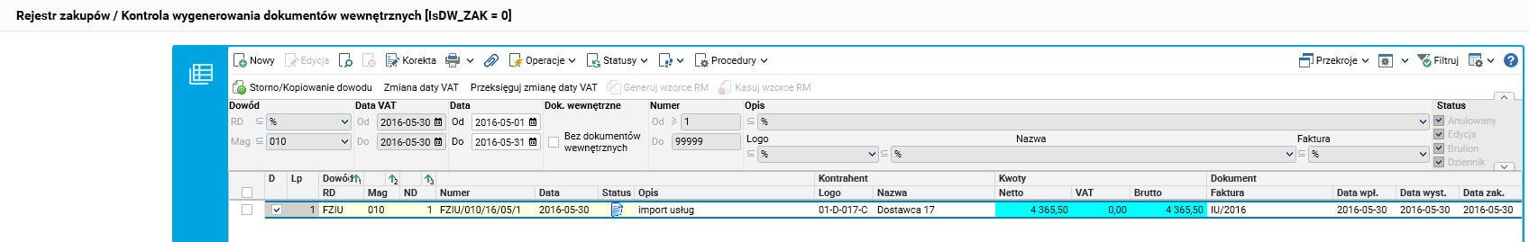 Kontroler VAT – weryfikacja, czy zostały wygenerowane dokumenty wewnętrzne dla podatku naliczonego
