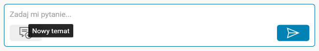 Kolejne pytania w danej rozmowie będą analizowane w kontekście poprzednich wiadomości użytkownika oraz odpowiedzi Asystenta. Jeżeli zaś użytkownik chce porozmawiać na nowy temat (zmienić kontekst), wówczas może użyć przycisku Nowy temat, który znajduje się na dole okna czatu z lewej strony (w aplikacji HTML oraz WPF). Użycie przycisku zapisze aktualną rozmowę w historii oraz wyczyści okno czatu i wszystkie konteksty, rozpoczynając nową konwersację.