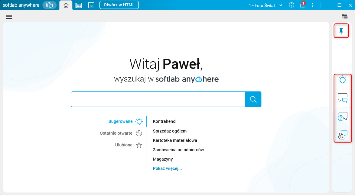 Rys. 2. Pasek narzędzi Inteligentnego Asystenta ERP w aplikacji HTML
