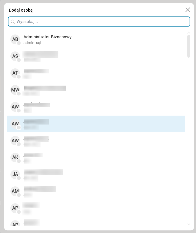 Rys. 31. Lista użytkowników, z którymi można rozpocząć konwersację
