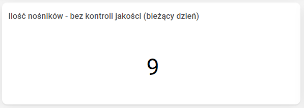 - Ilość nośników – bez kontroli jakości przedstawia sumaryczną liczbę nośników, które nie przeszły kontroli jakości w bieżącym dniu dla aktualnie realizowanych zleceń transportowych.