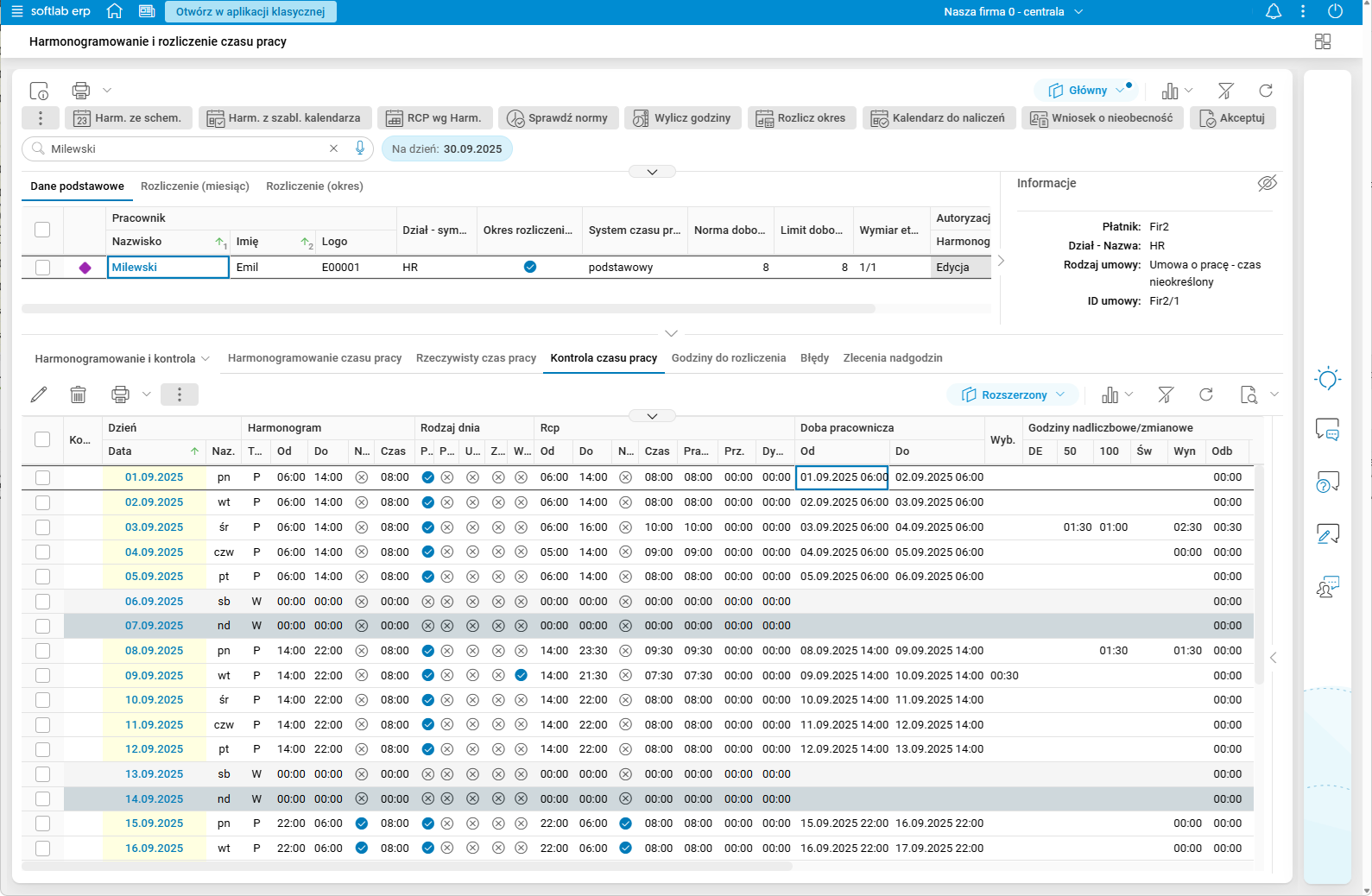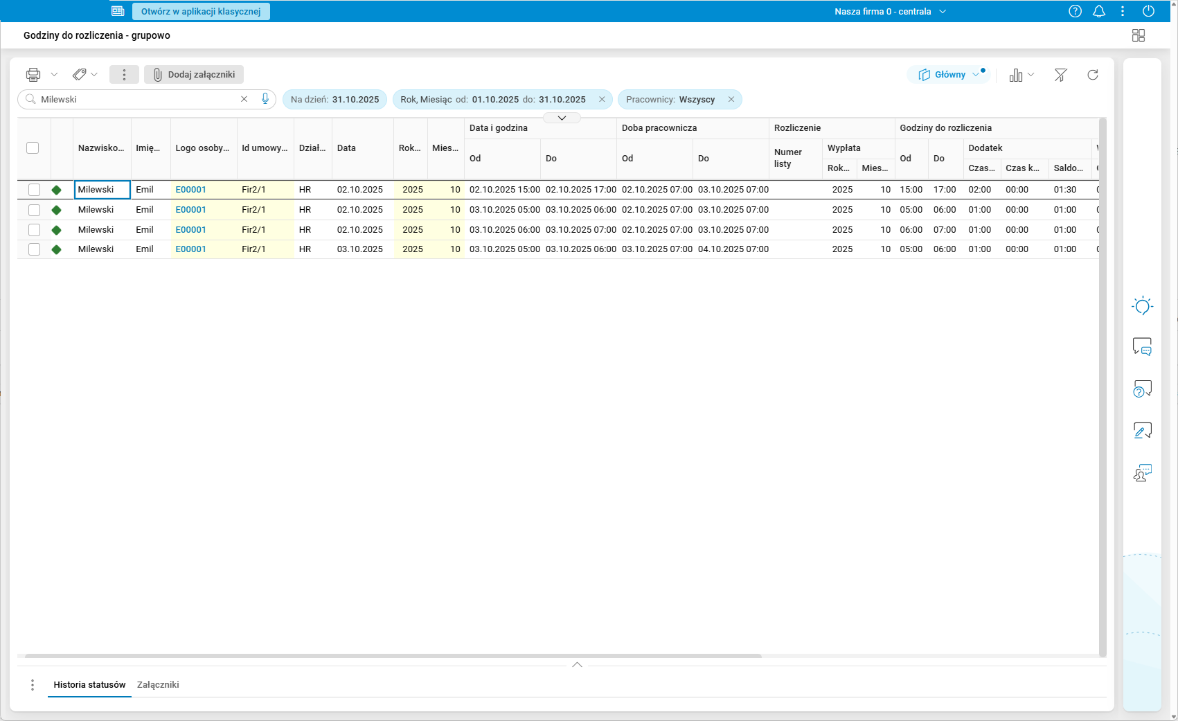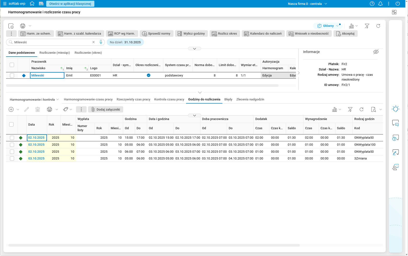 Szczegół Doby pracownicze oraz nadgodziny w przekroju Miesięczny prezentuje dane tylko z bieżącego miesiąca.