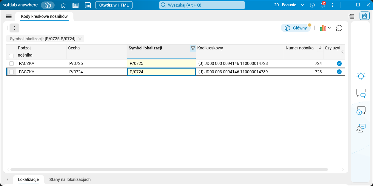 Symbol lokalizacji wygenerowanego nośnika zostaje zapisany w dokumencie PRK w polu Symbol lokalizacji.