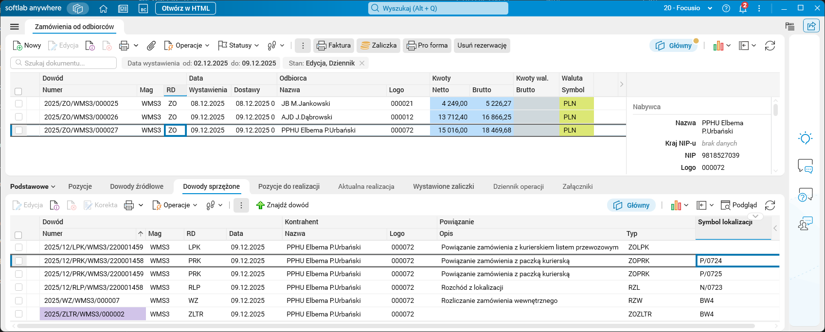 W pakowaniu e-commerce HTML dodano funkcjonalność umożliwiającą rejestrowanie kodów kreskowych z etykiet kurierskich i przypisywanie ich do paczek PRK oraz powiązanie paczek kurierskich z nośnikiem zbiorczym.