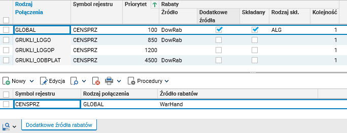Rys. Słownik Priorytety cenników i rabatów – szczegół Dodatkowe źródła rabatów