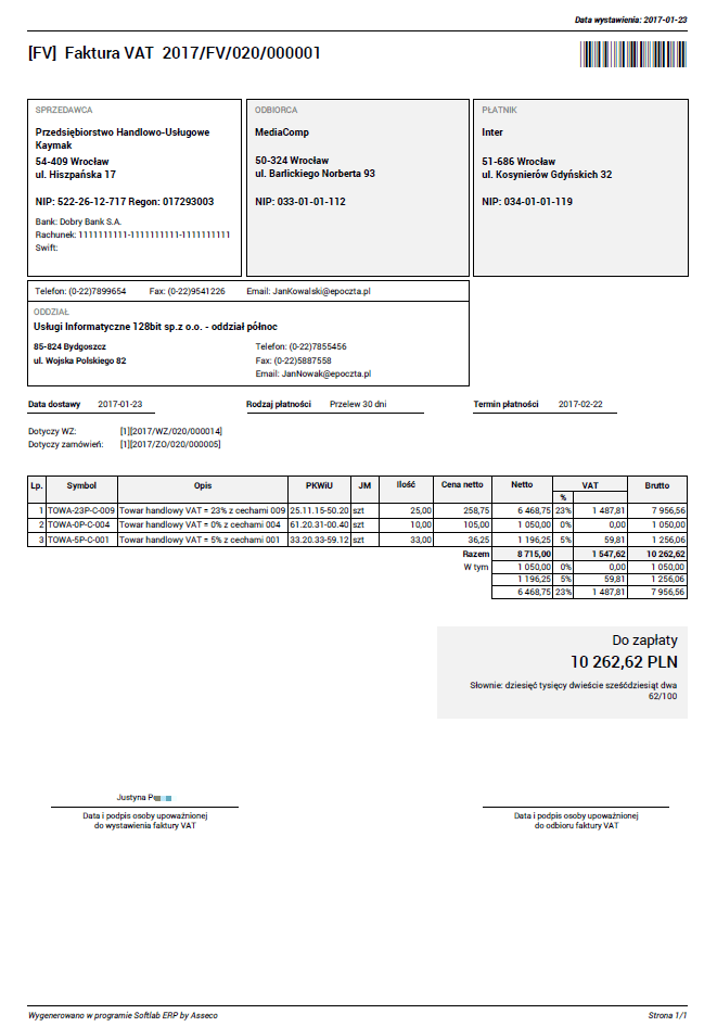 Poniżej znajduje się przykładowy wydruk faktury wykorzystujący nowy wzorzec: