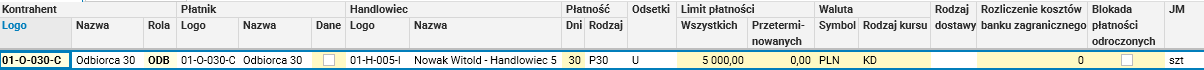 Zdefiniowana w tym miejscu jednostka miary będzie w pierwszej kolejności podpowiadana podczas transakcji przeprowadzanych z tym kontrahentem dla obrotów towarami, dla których zdefiniowana jednostka miary jest dostępna.