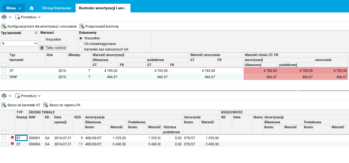 Rysunek 3. Kontroler amortyzacji i umorzenia