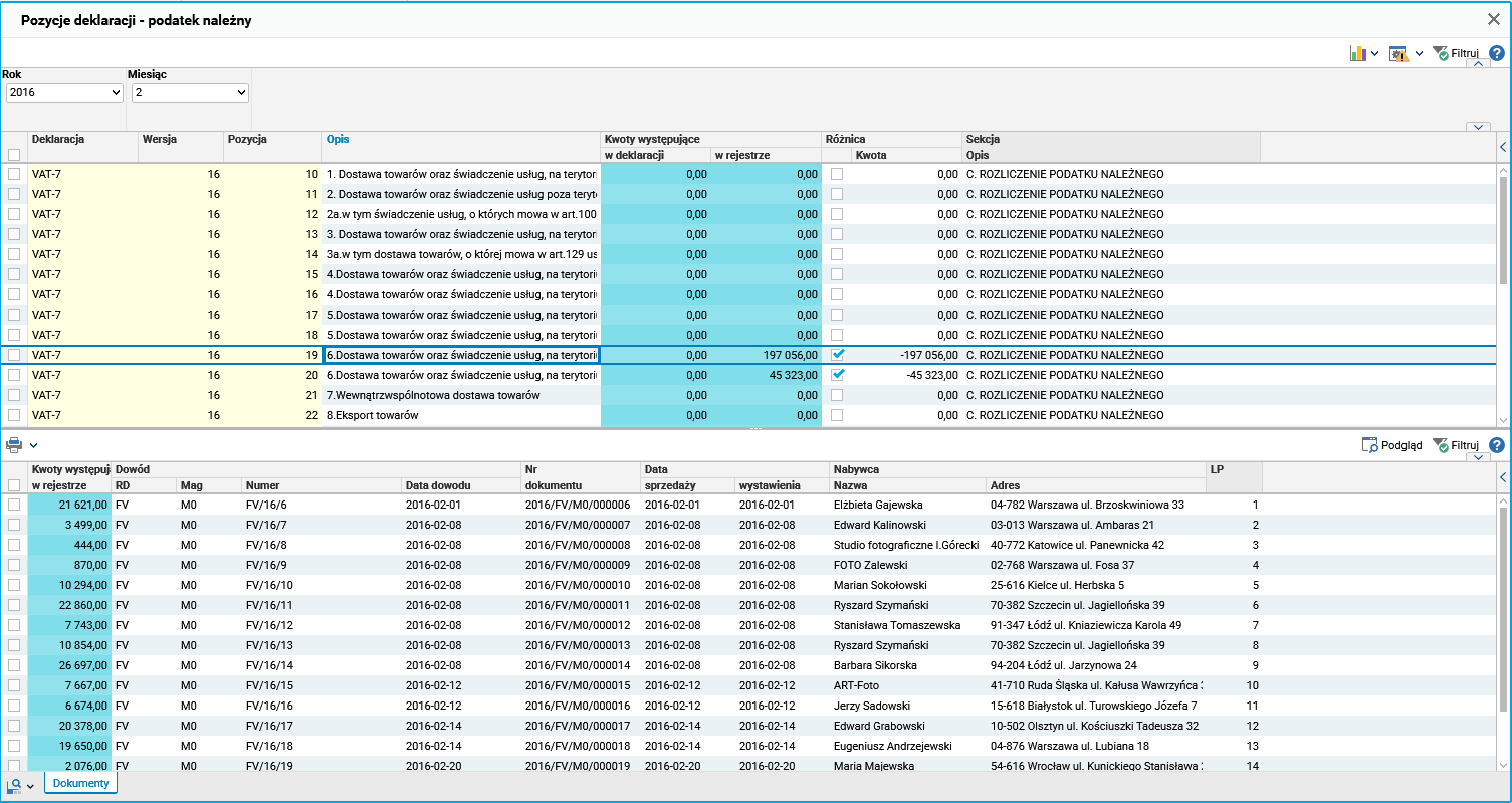 Do słowników Kontroler VAT – sprzedaż oraz Kontroler VAT – zakup dodano możliwość przeglądania dokumentów wchodzących do poszczególnych pozycji deklaracji VAT-7.