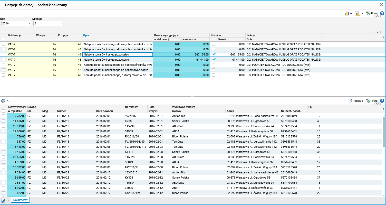 Rys. Kontroler zakupu – szczegółowe pozycje deklaracji