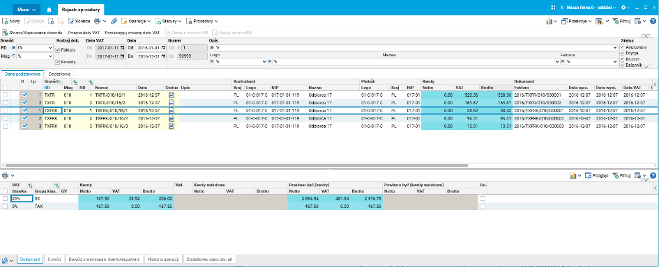 Rys. Przykładowe linijki dokumentu TAX-FREE w rejestrze sprzedaży VAT
