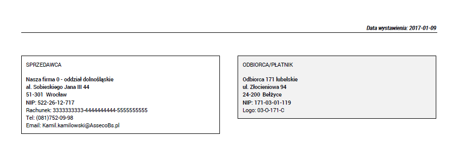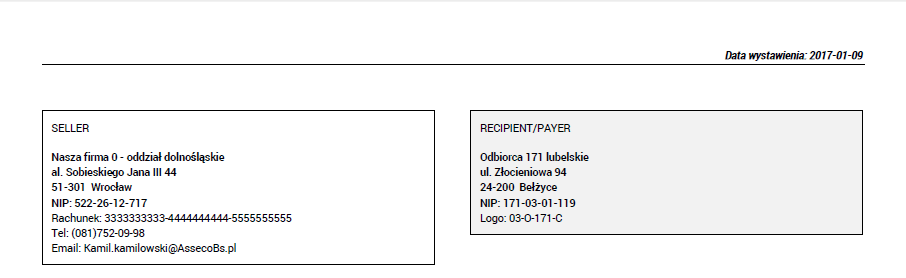 Rys. Etykiety sekcji danych kontrahentów w języku polskim