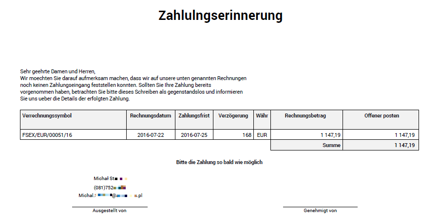 Rys. Wezwanie do zapłaty w języku niemieckim