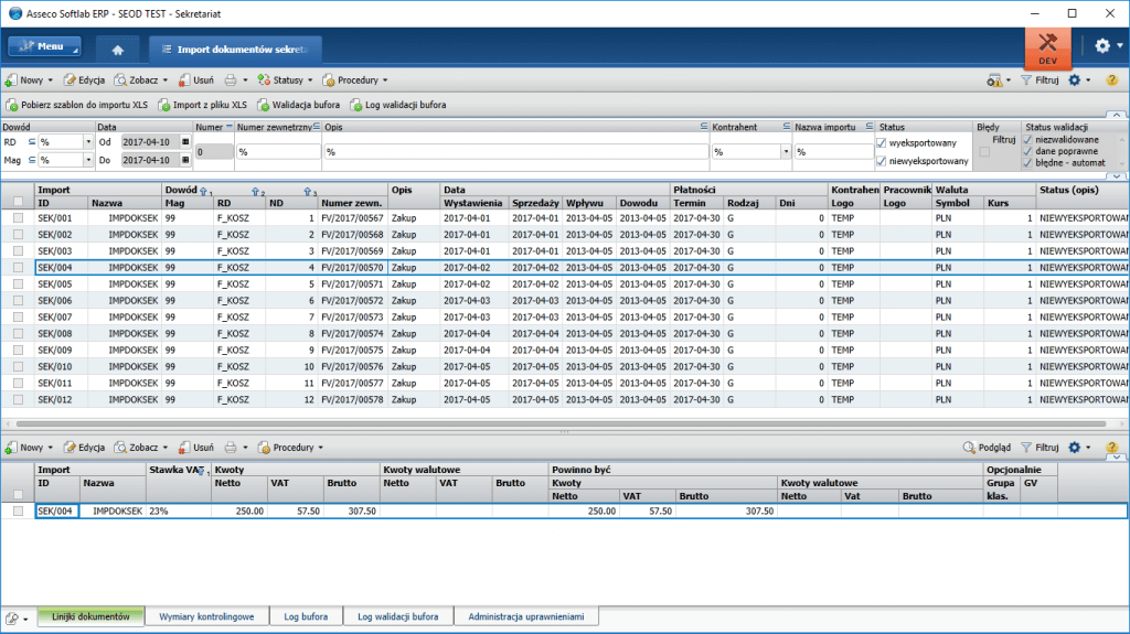 Zdarzają się sytuacje, w których jednorazowo do sekretariatu wpływa wiele dokumentów od jednego kontrahenta. Obsługa znacznej liczby faktur jest zwykle czasochłonna, ale przecież nie musi taka być. Do modułu Sekretariat (w systemie Asseco Softlab ERP) został dodany mechanizm importu danych z pliku, który pozwoli ten proces zoptymalizować.