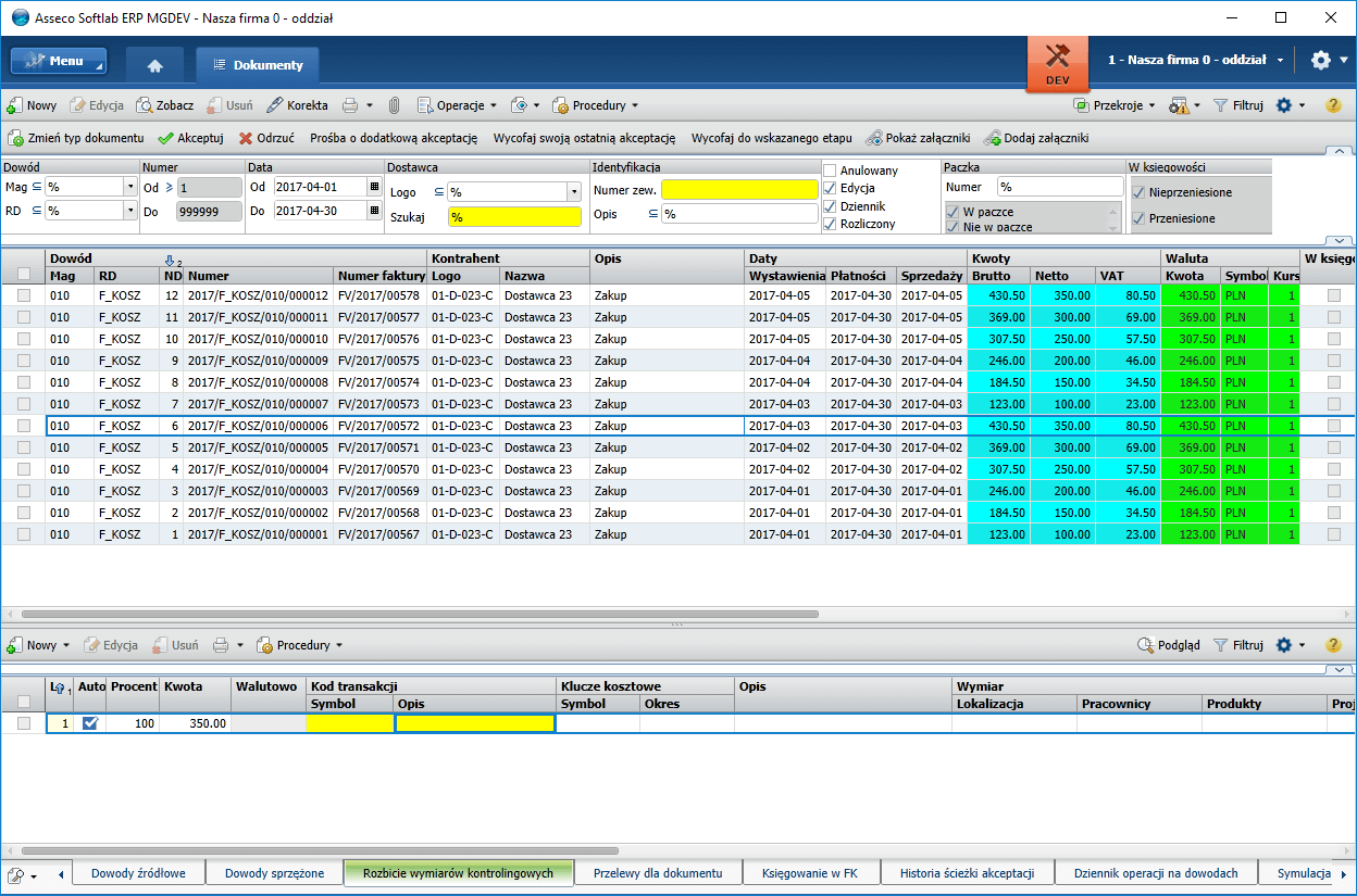 Ograniczeniem ze strony systemu Asseco Softlab ERP był brak możliwości szybkiej rejestracji podobnych dokumentów i wprowadzenia ich w obieg (poprzez moduł Sekretariat) do akceptacji kosztów. Każdy dokument wymagał odrębnego zarejestrowania, co w przypadku tego samego kontrahenta wymagało wielokrotnego uzupełniania tych samych danych nagłówkowych. Potrzebny był mechanizm, dzięki któremu rejestracja takiej „paczki” dokumentów byłaby znacznie szybsza.
