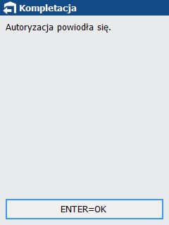 Autoryzacji można dokonać bezpośrednio na terminalu (poprzez wybranie opcji autoryzacji (F2)) i jej potwierdzenie poprzez zalogowanie się operatora, który posiada nadane uprawnienia: