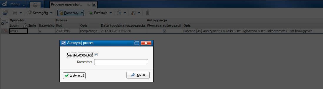 - Kierownik magazynu uznał, że magazynier ma już wystarczające doświadczenie i jego dotychczasowa praca wskazuje, iż nie stwierdza on braków bezpodstawnie. Zostały więc operatorowi dodane pełne uprawnienia do rejestrowania braków, bez konieczności dodatkowych autoryzacji.