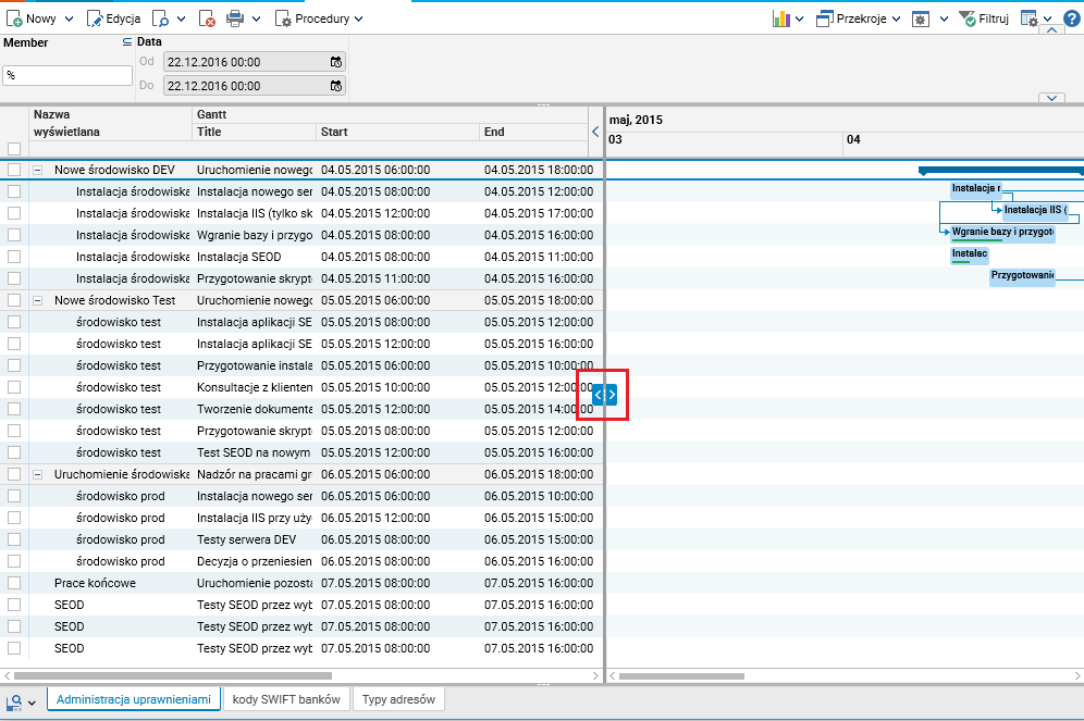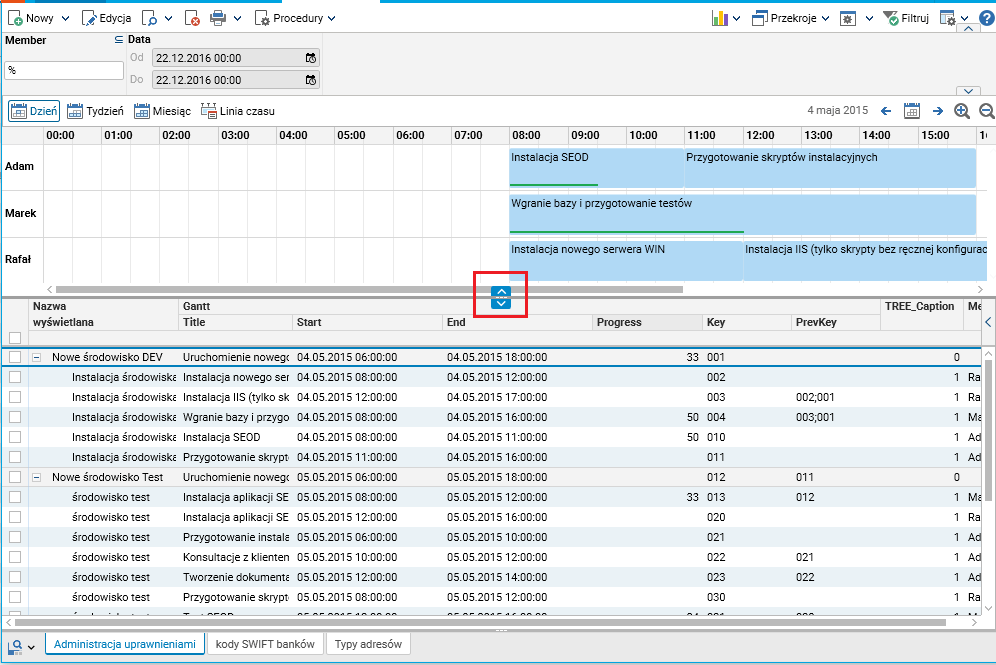 Do diagramu Gantta zostały dodane przyciski umożliwiające szybkie zwinięcie niepotrzebnego w danej chwili komponentu.