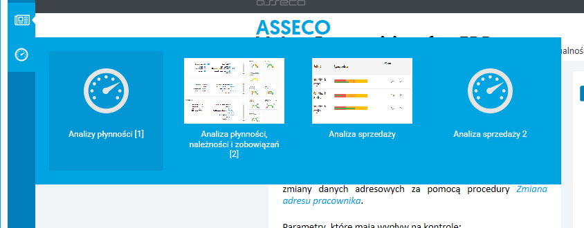 Do aplikacji zostały dodane dashboardy biznesowe HTML. Umożliwiają one wyświetlanie danych w formie graficznej. Dashboardy biznesowe można zobaczyć po kliknięciu ikony licznika na pionowym pasku z lewej strony głównego okna programu.